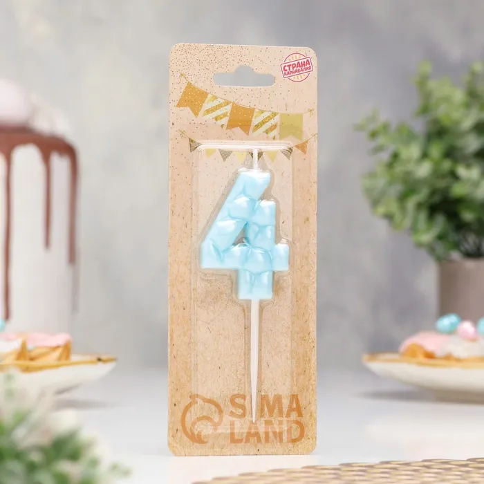 Свеча для торта «Цифра 4», голубая — Характеристики
