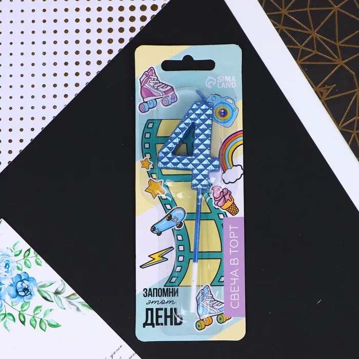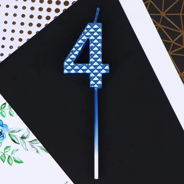 Свеча для торта, цифра «4», синяя, 4 х 13 см — Характеристики