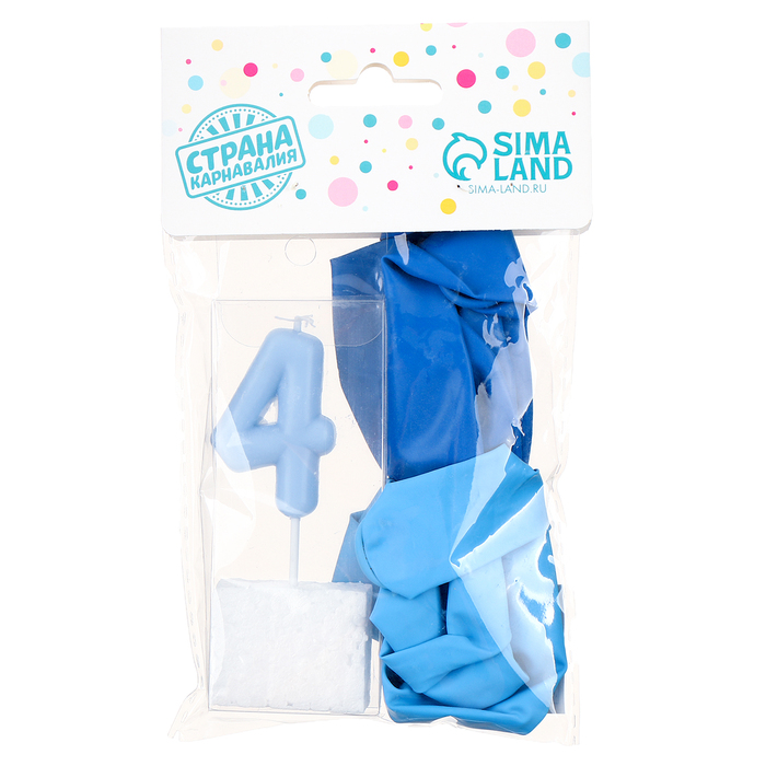 Свеча для торта, цифра 4 + воздушные шары, 5 шт, голубой
