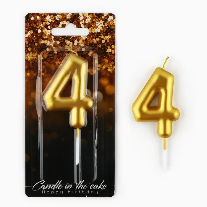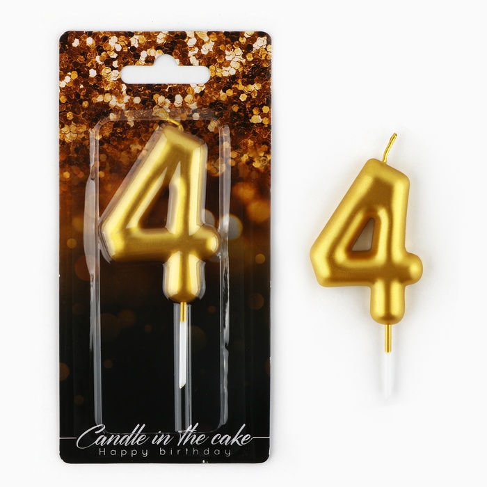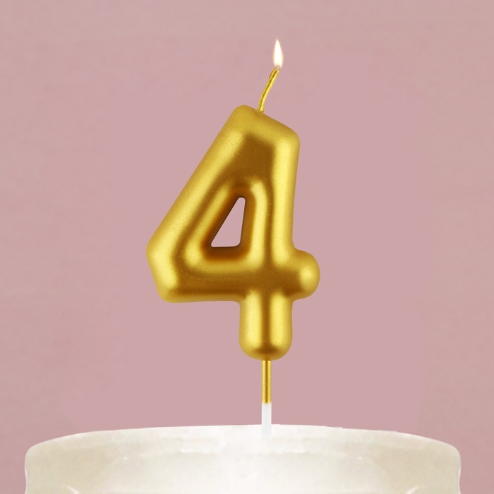 Свеча для торта, цифра «4», золото, 9,5 х 4 см