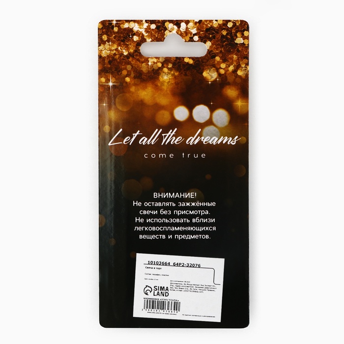 Свечи для торта на День рождения - неотъемлемая часть праздника. Украсьте угощение свечами, чтобы сделать особенный день в году ещё более ярким и незабываемым. Ведь задувание свечей вызывает бурные эмоции и у взрослых, и у детей, потому что в любом возрасте мы все мечтаем об исполнении желаний и для всех нас это один из самых трогательных и волшебных моментов. Яркие свечи украсят праздничный стол и создадут нужную атмосферу. Изготовлены из высокоочищенного пищевого парафина, который не влияет на вкусовые качества блюд, а удобная упаковка помогает сохранять свечи при длительном хранении и транспортировке.
