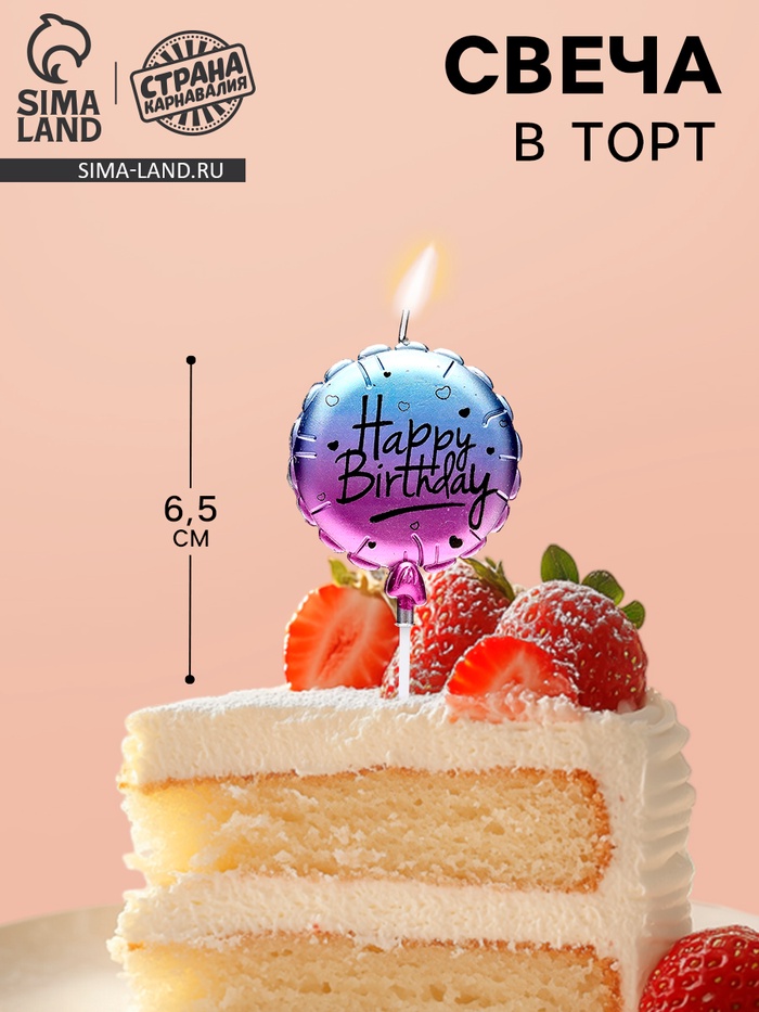 Свеча для торта "С Днем Рождения!", 8 х 8,8 см, Союзмультфильм