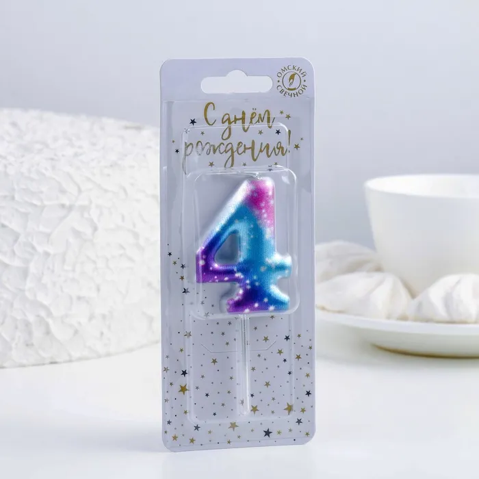 Свеча для торта цифра 4,космос, 5.5 см, 16 мин — Характеристики