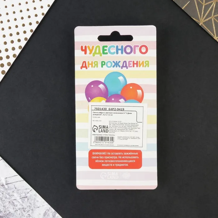 Свеча для торта, цифра 5 «С Днем рождения», 7 х 4,3 см — Характеристики