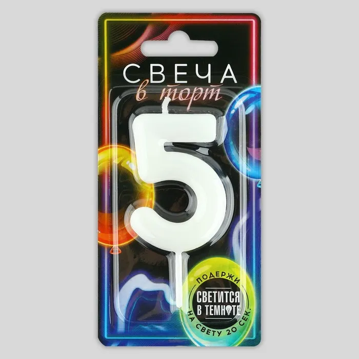 Свеча для торта, цифра «5», светится в темноте, 3,8 х 8 см