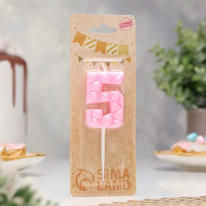 Свеча для торта «Цифра 5», светло-розовая — Характеристики