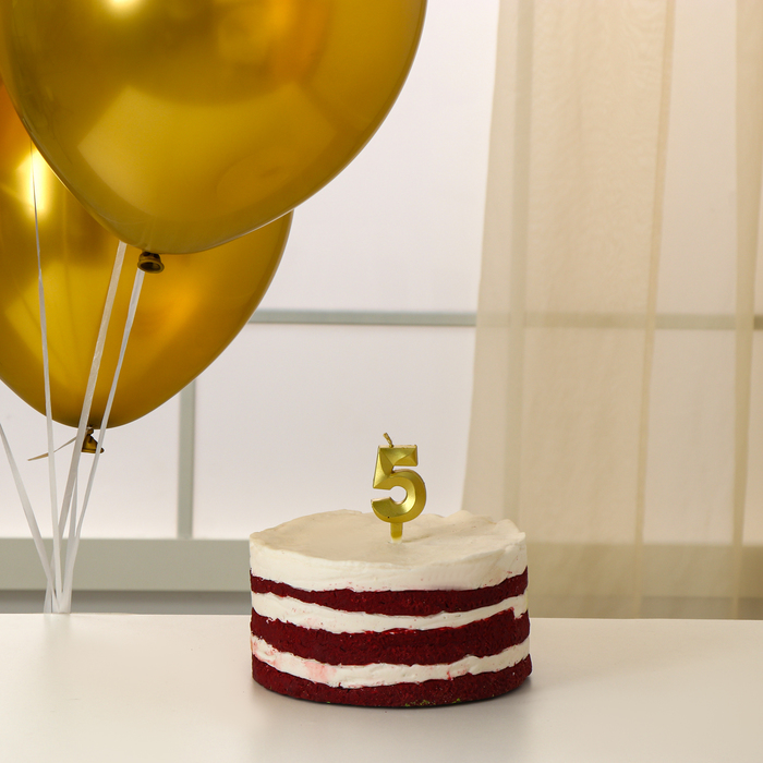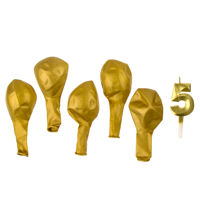 Свеча для торта, цифра 5 + воздушные шары, 5 шт, золото