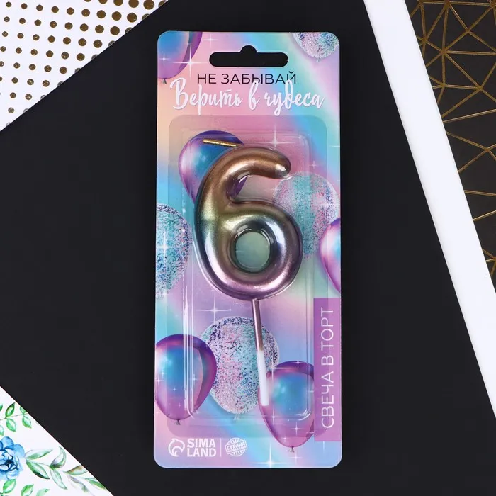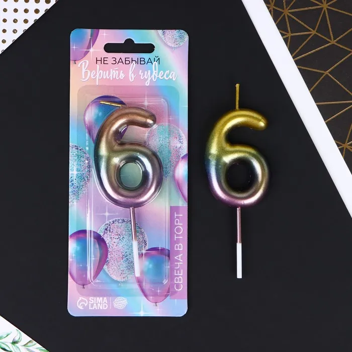 Свеча для торта, цифра «6», 10 х 3,5 см.