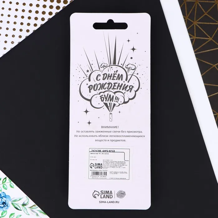 Свеча для торта, цифра «6», 10 х 3,5 см. — Характеристики