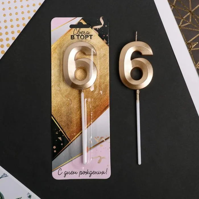 Свеча для торта, цифра «6», 3,5 х 12 смм