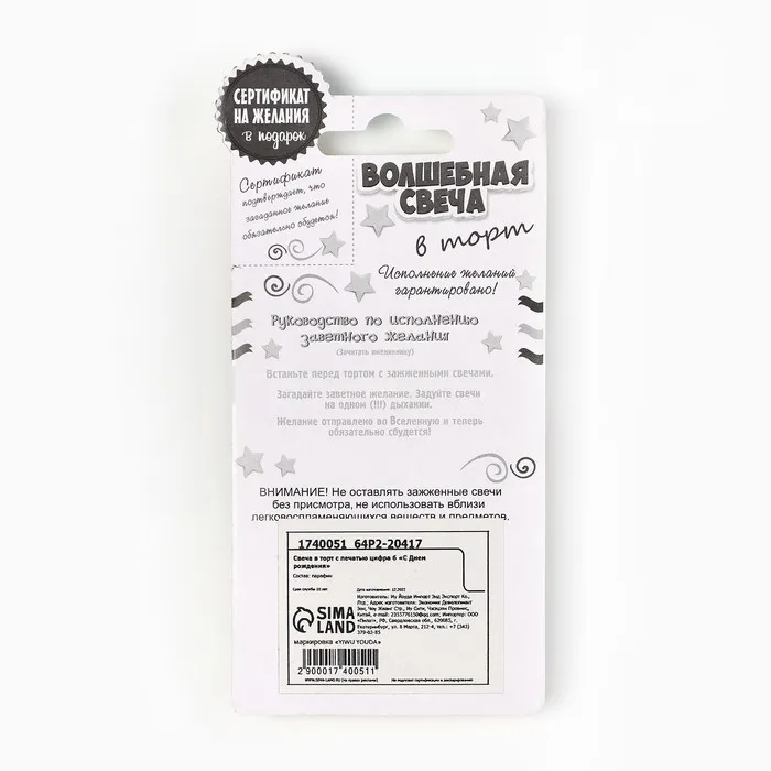 Свечи для торта на День рождения - неотъемлемая часть праздника. Украсьте угощение свечами, чтобы сделать особенный день в году ещё более ярким и незабываемым. Ведь задувание свечей вызывает бурные эмоции и у взрослых, и у детей, потому что в любом возрасте мы все мечтаем об исполнении желаний и для всех нас это один из самых трогательных и волшебных моментов. Яркие свечи украсят праздничный стол и создадут нужную атмосферу. Изготовлены из высокоочищенного пищевого парафина, который не влияет на вкусовые качества блюд, а удобная упаковка помогает сохранять свечи при длительном хранении и транспортировке.