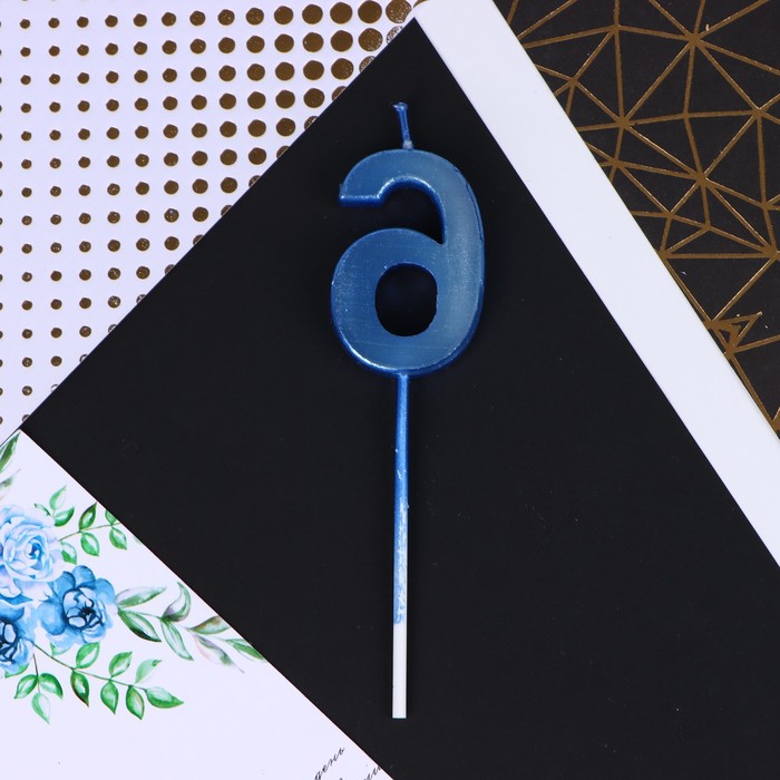 Свеча для торта, цифра «6», синяя, 4 х 13 см