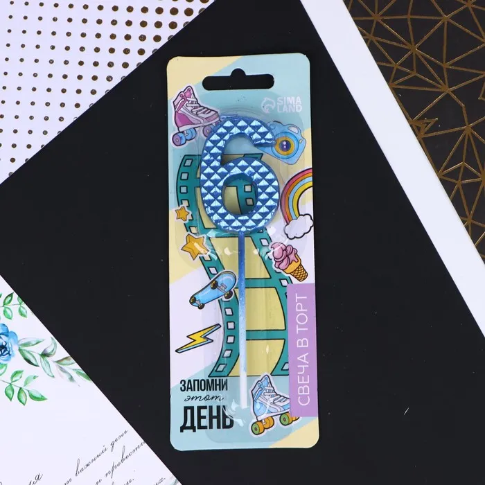 Свеча для торта, цифра «6», синяя, 4 х 13 см — Характеристики