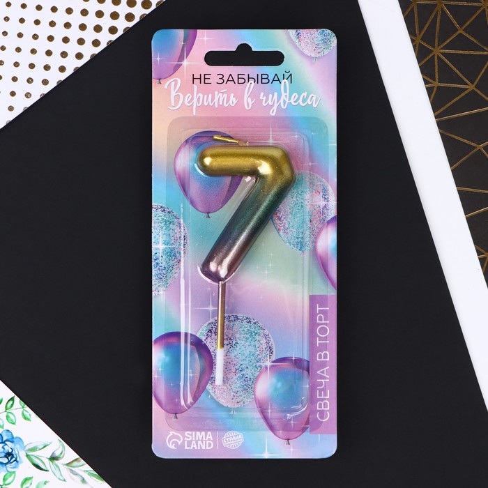 Свеча для торта, цифра «7», радужная, 10 х 3,5 см.