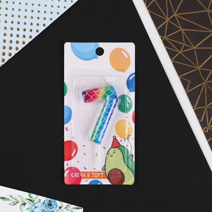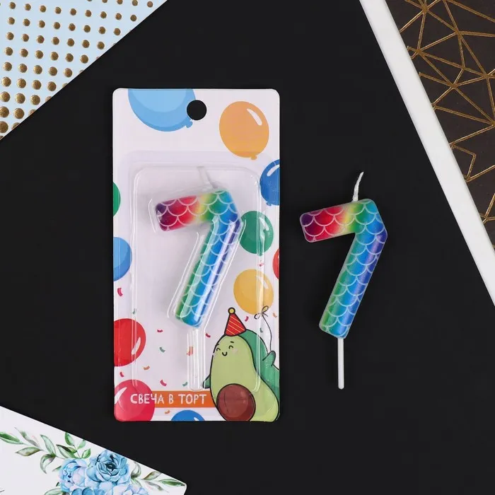 Свеча для торта, цифра «7», разноцветная, 5,5 х 8 см. — Характеристики