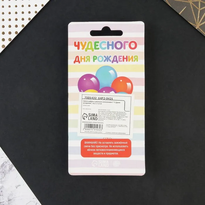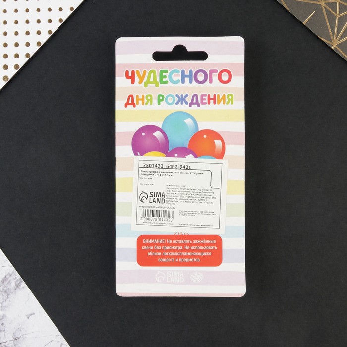 Свеча для торта, цифра 7 «С Днем рождения», 7 х 4,3 см — Характеристики
