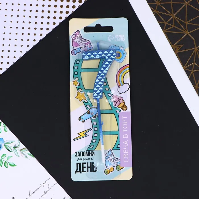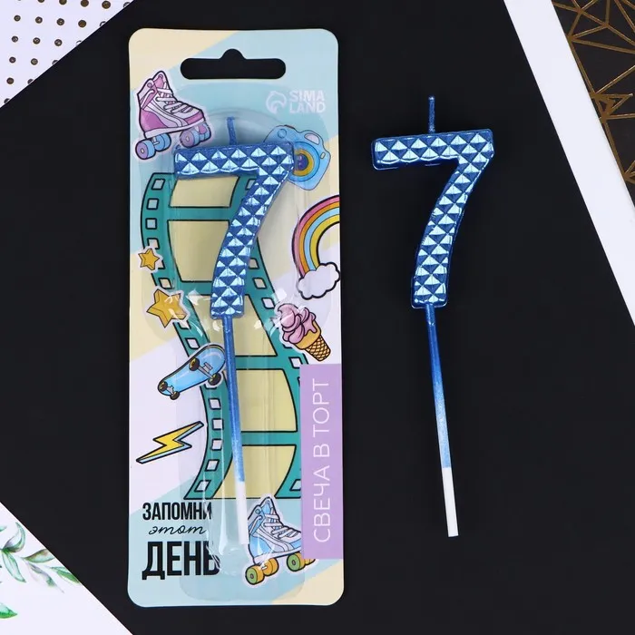 Свеча для торта, цифра «7», синяя, 4 х 13 см — Характеристики