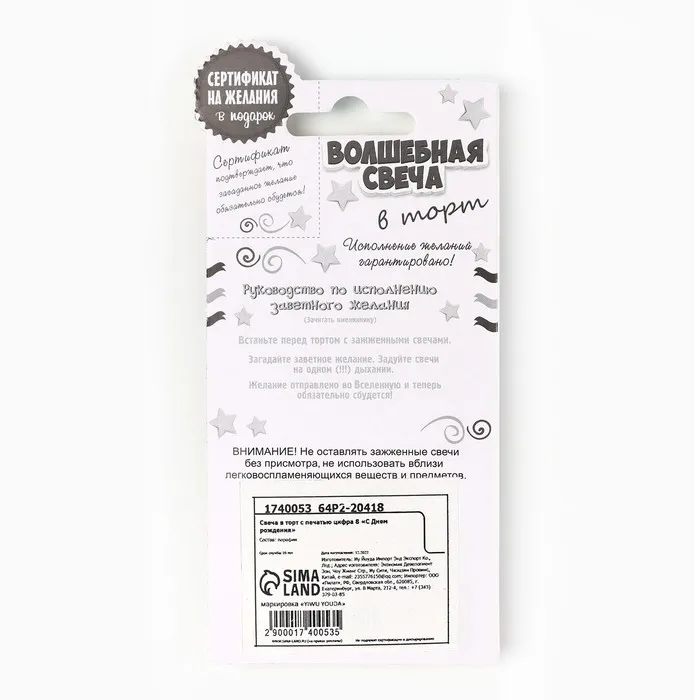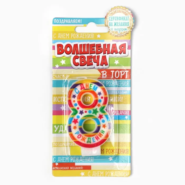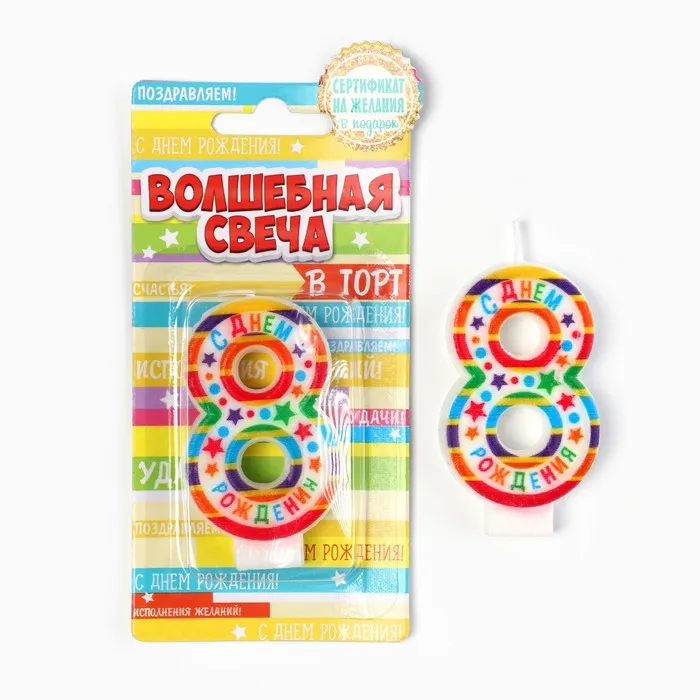 Свечи для торта на День рождения - неотъемлемая часть праздника. Украсьте угощение свечами, чтобы сделать особенный день в году ещё более ярким и незабываемым. Ведь задувание свечей вызывает бурные эмоции и у взрослых, и у детей, потому что в любом возрасте мы все мечтаем об исполнении желаний и для всех нас это один из самых трогательных и волшебных моментов. Яркие свечи украсят праздничный стол и создадут нужную атмосферу. Изготовлены из высокоочищенного пищевого парафина, который не влияет на вкусовые качества блюд, а удобная упаковка помогает сохранять свечи при длительном хранении и транспортировке.