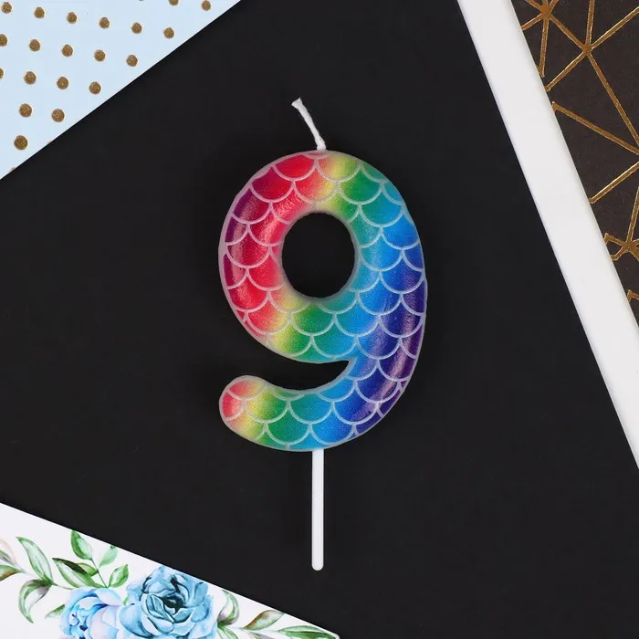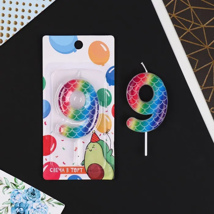 Свеча для торта, цифра «9», разноцветная, 5,5 х 8 см. — Характеристики