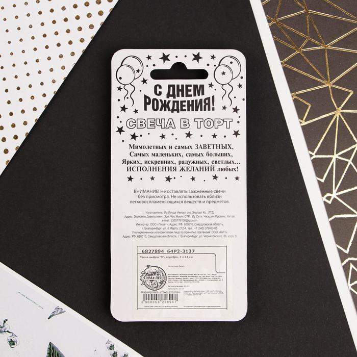Свеча для торта, цифра «9», серебро, 3×6 см — Характеристики