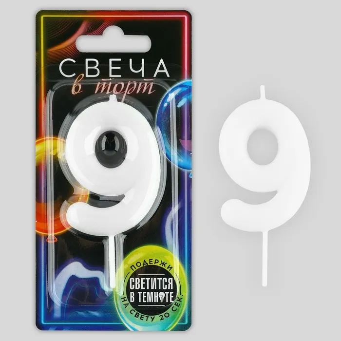 Свеча для торта, цифра «9», светится в темноте, 3,8 х 8 см