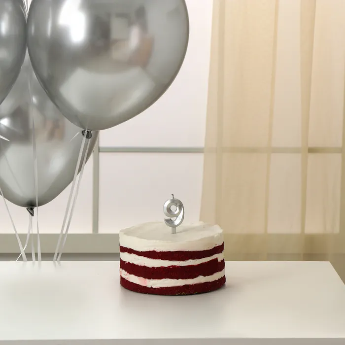 Свеча для торта, цифра 9 + воздушные шары, 5 шт, серебро — Характеристики