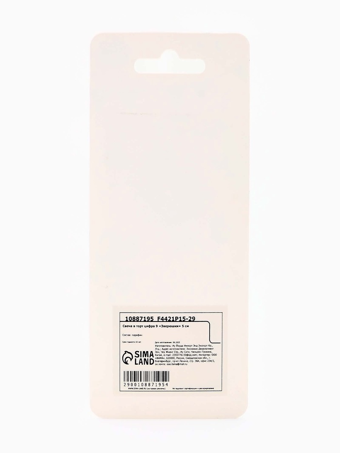 Свеча для торта цифра 9 «Зверюшки», 5 см — Характеристики