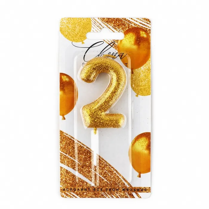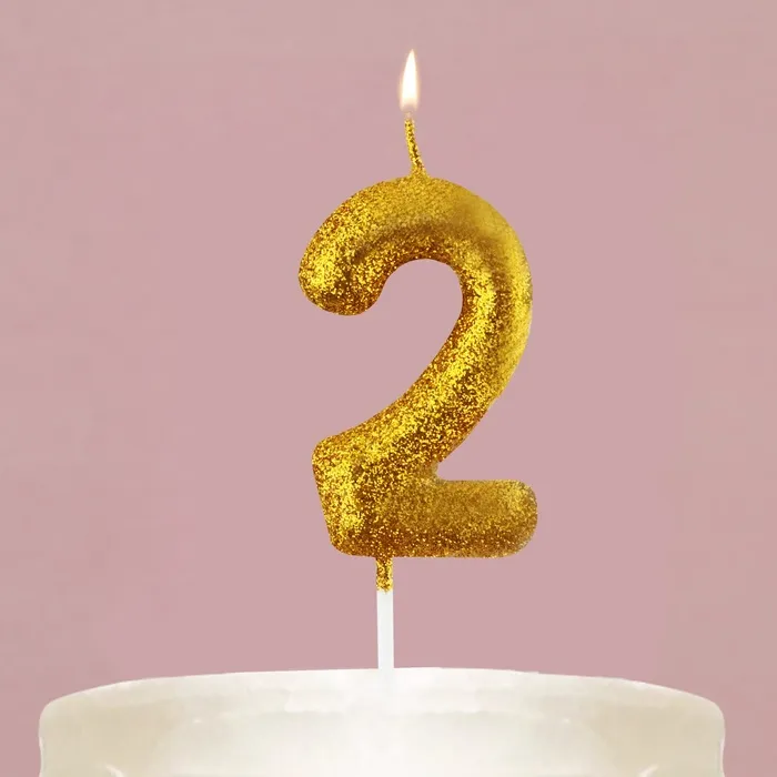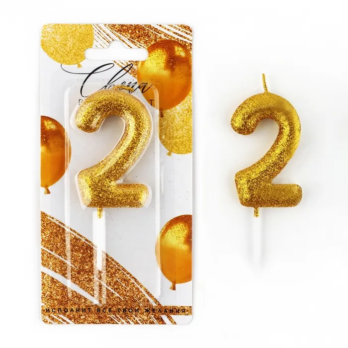 Свеча для торта, цифра, блестящая «2», золото, 9,5 х 4 см