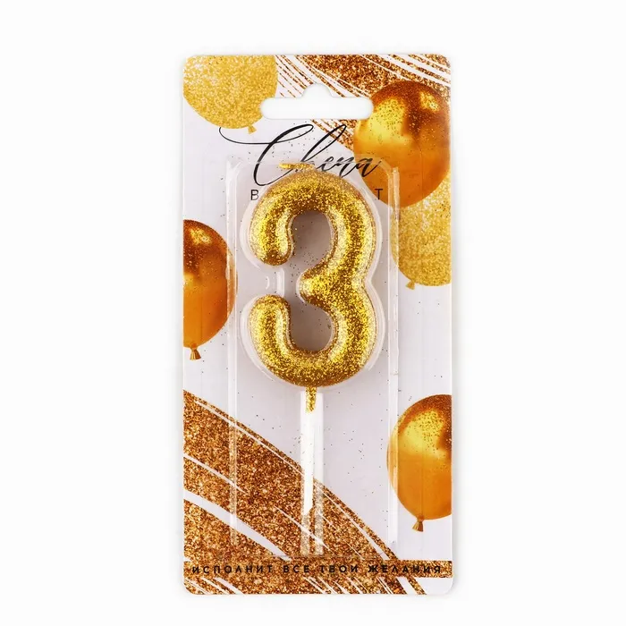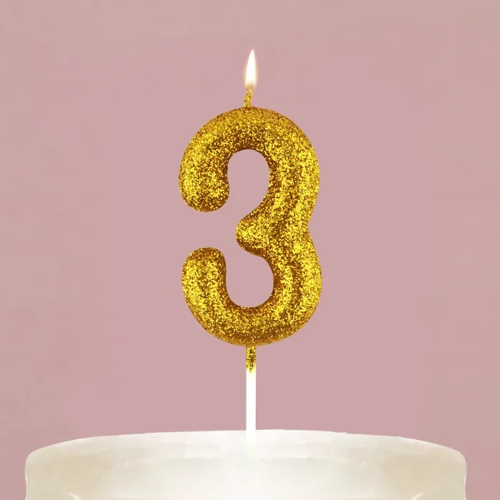 Свеча для торта, цифра, блестящая «3», золото, 9,5 х 4 см
