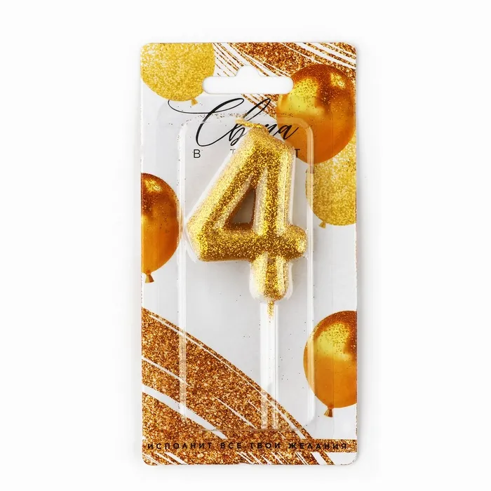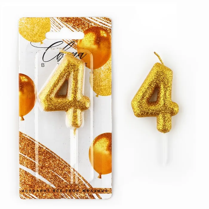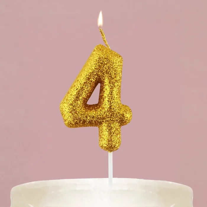 Свеча для торта, цифра, блестящая «4», золото, 9,5 х 4 см