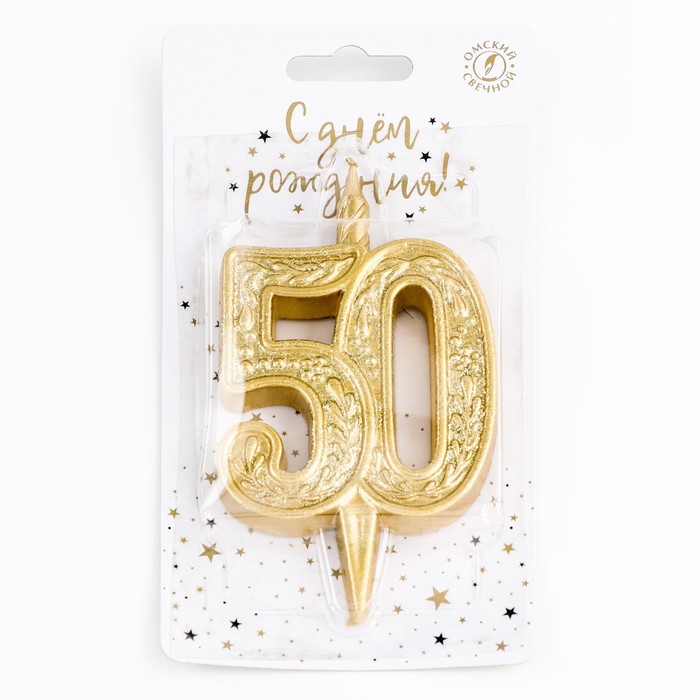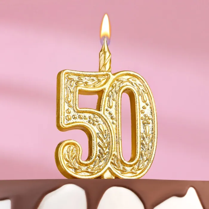 Свеча для торта цифра «Юбилейная» 50, золотая, 9.7 см — Характеристики