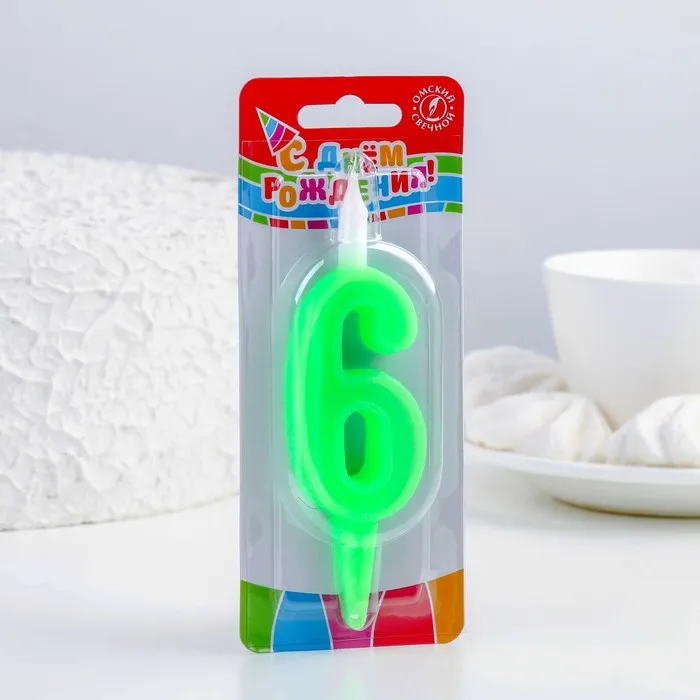 Свеча для торта цифра «Классика», 9.7 см, цифра 6 зелёная — Характеристики