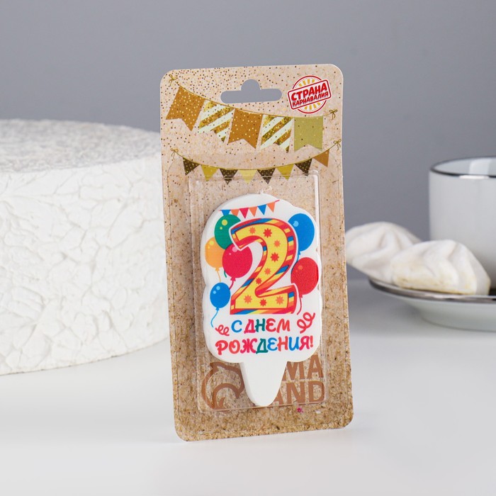 Свеча для торта цифра «Праздник» жёлтая 2, 6.5 см — Характеристики
