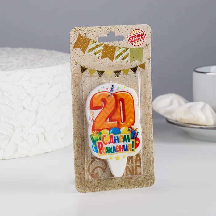 Свеча для торта цифра «С Днём Рождения» 20 оранжевая, 6.5 см — Характеристики
