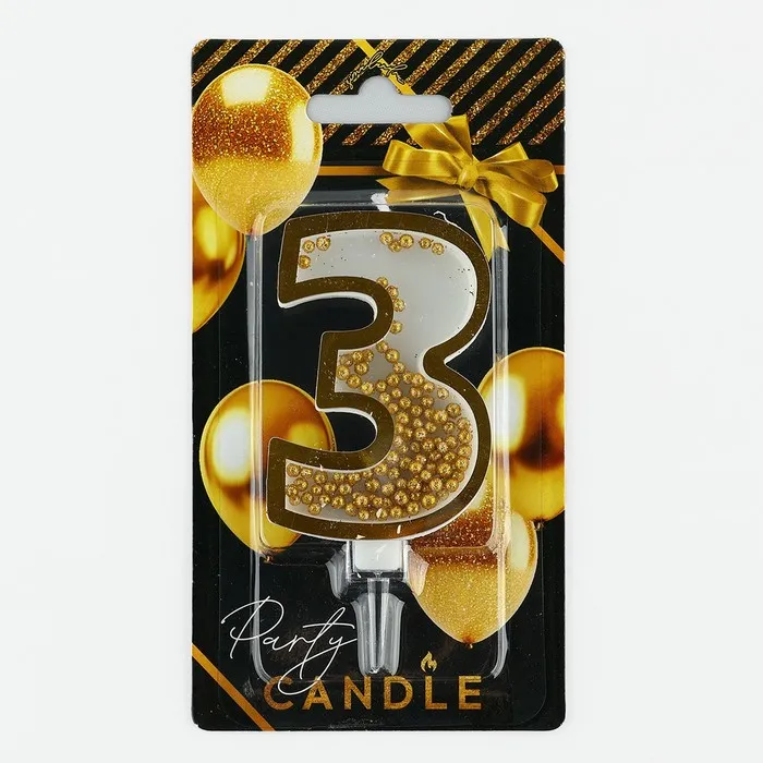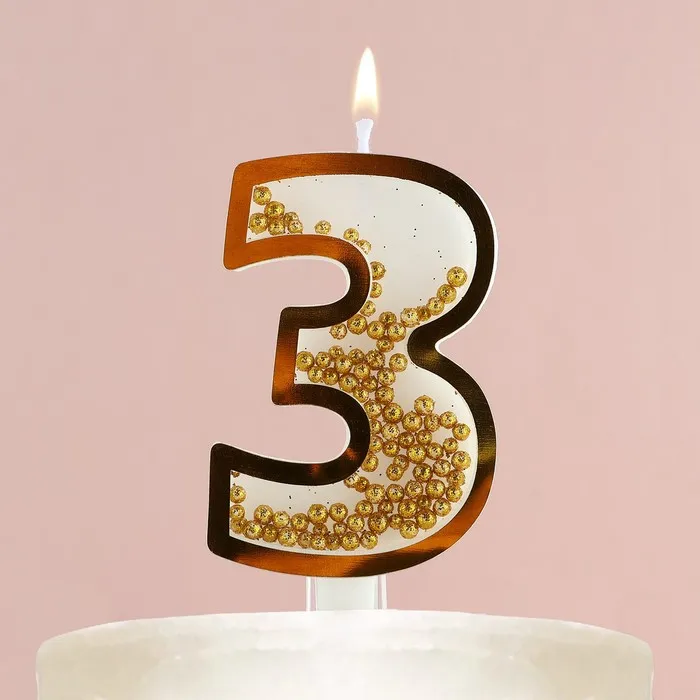 Свеча для торта, цифра с шейкером «3», 9,5 х 4 см