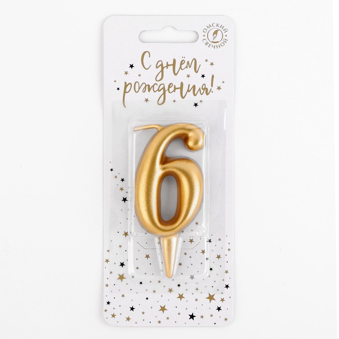 Свеча для торта цифра «Золотая», 5.5 см, цифра 6 — Характеристики