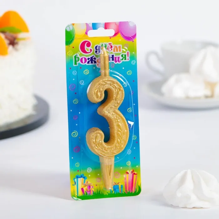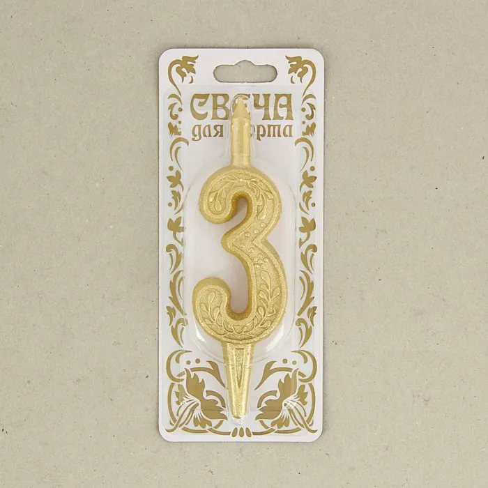 Свеча для торта цифра «Золотой узор», 10.2 см, цифра 3 — Характеристики