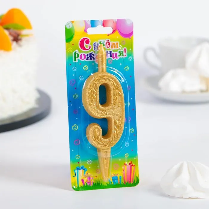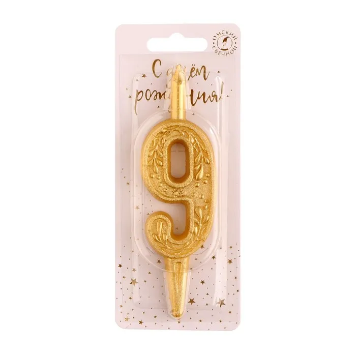 Свеча для торта цифра «Золотой узор», 10.2 см, цифра 9 — Характеристики