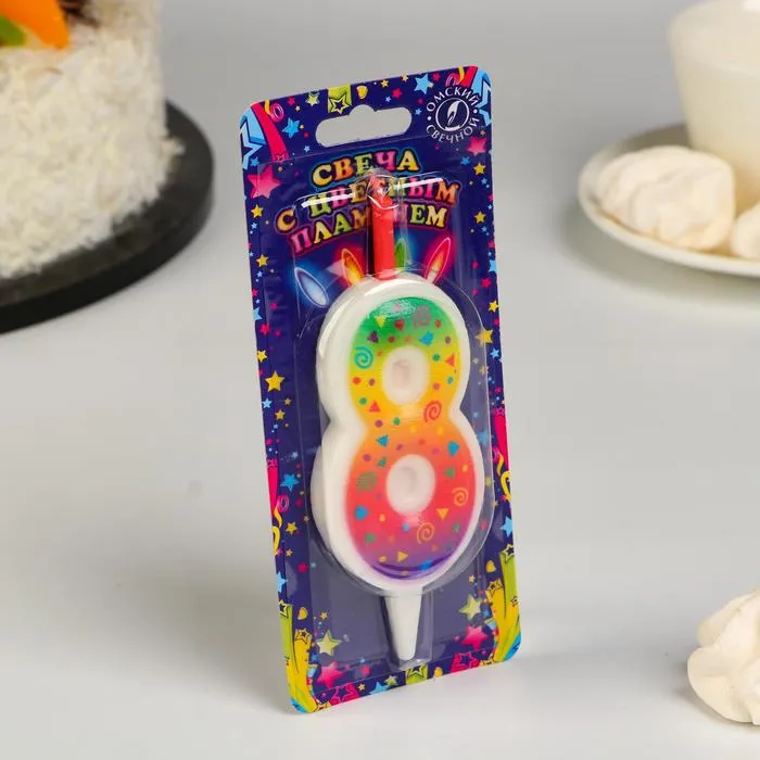 Свеча для торта «Цветное пламя», 10 см, цифра 8 — Характеристики