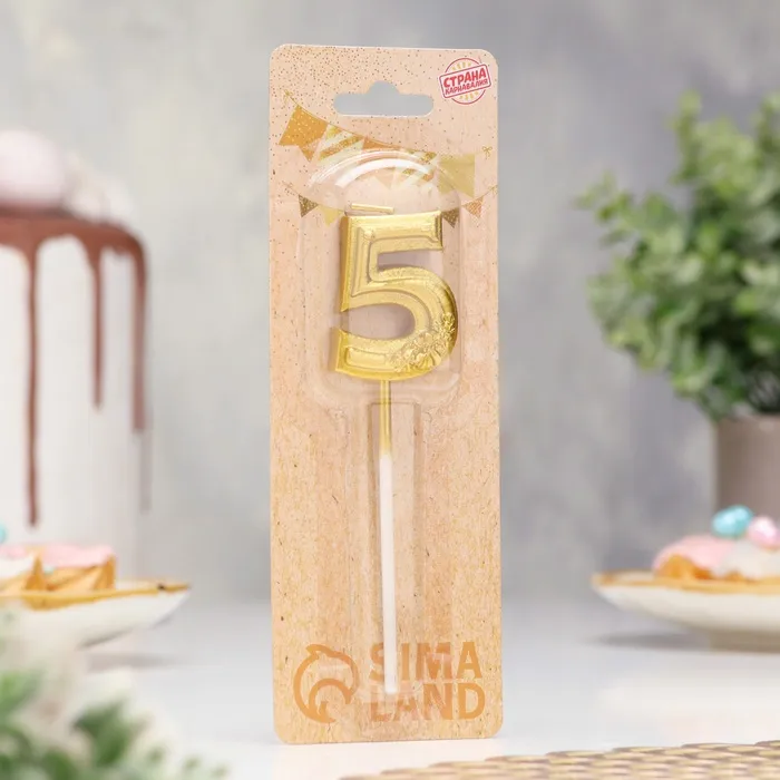 Свеча для торта «Цветочки», цифра 5, золотая — Характеристики