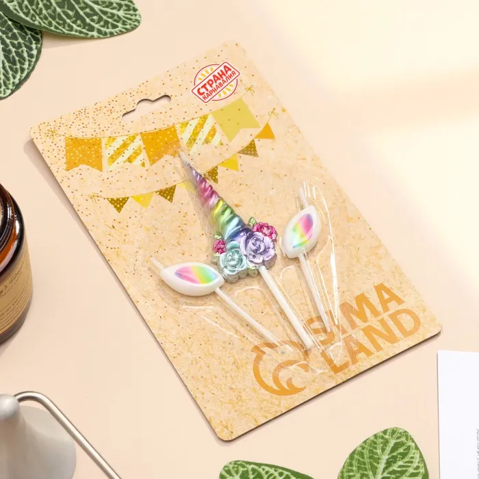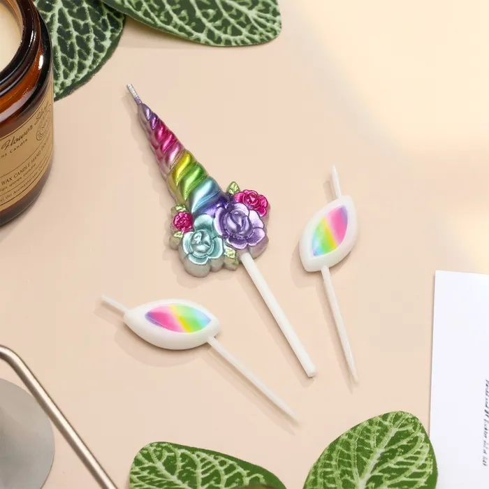 Свеча для торта «Волшебный единорог» 3 шт., разноцветные — Характеристики