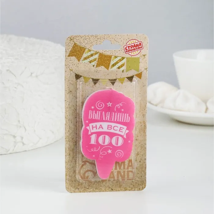 Свеча для торта «Выглядишь на все 100», розовая, 6.5 см — Характеристики