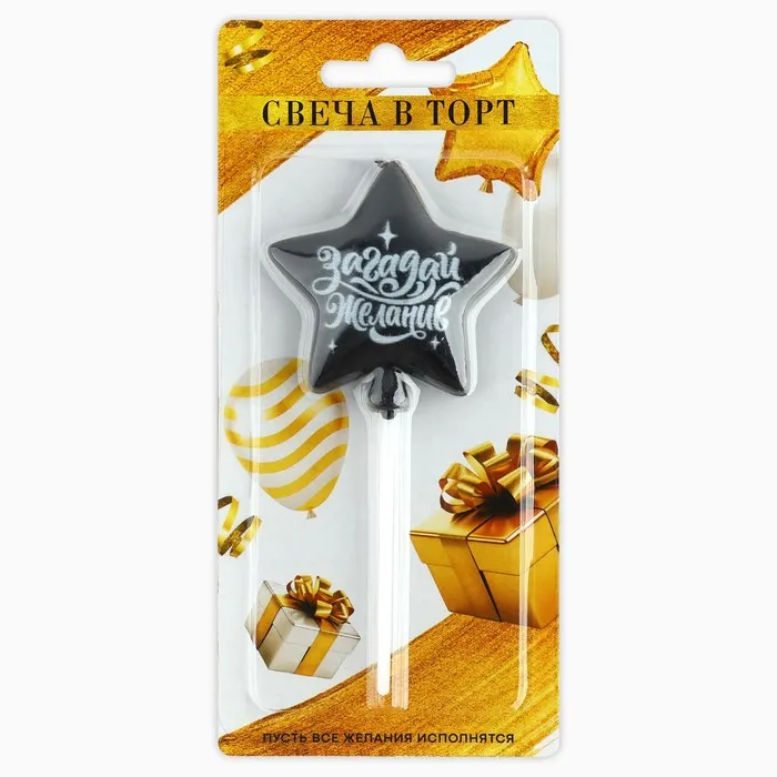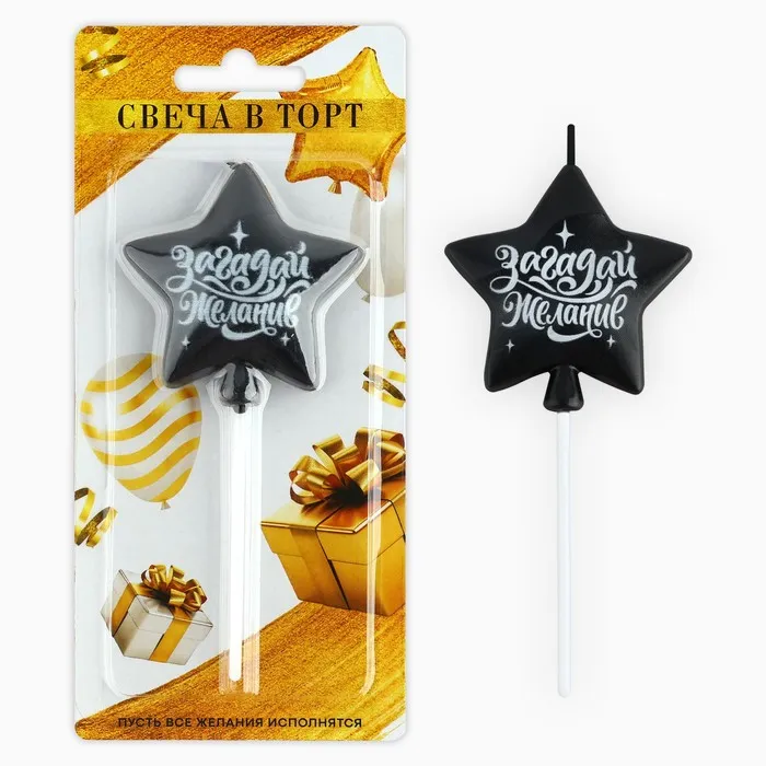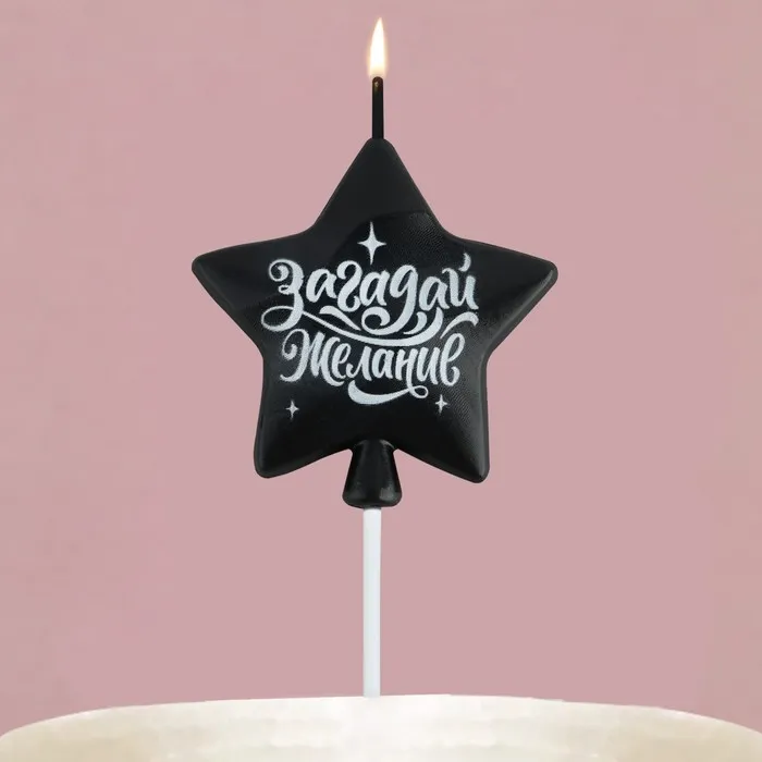 Свеча для торта «Загадай желание», чёрная, 5,5 х 12 см