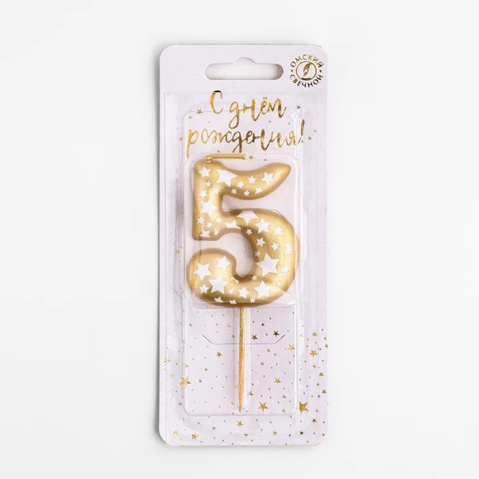 Свеча для торта «Золотая со звездами», цифра 5, 5.5 см — Характеристики