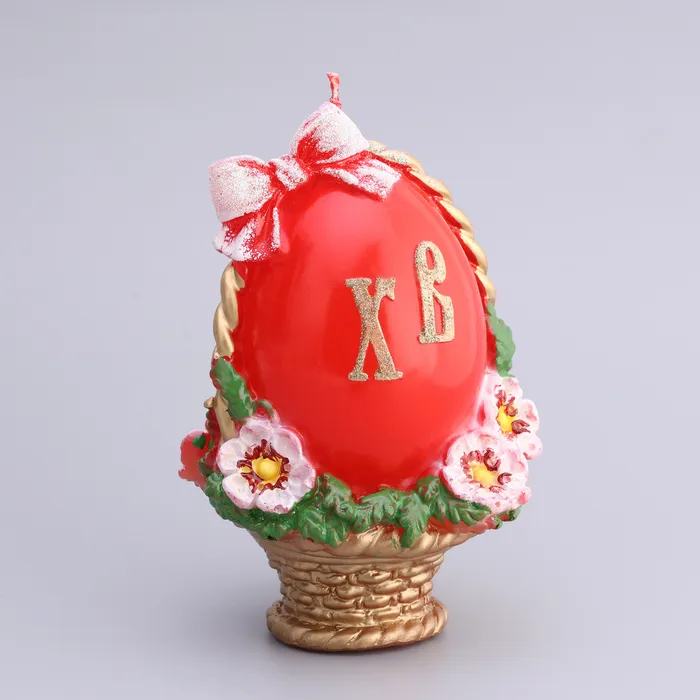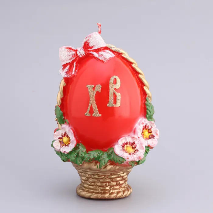 Традиционный пасхальный символ обретает новое воплощение в этой изящной фигурной свече. Яркое яйцо в ажурной корзинке высотой 14,5 см создаёт праздничное настроение даже без зажжённого фитиля, становясь центром пасхальной композиции.