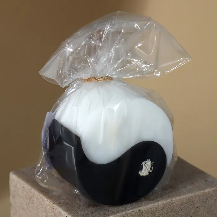 Свеча выполнена в виде символа Инь-Ян, черного и белого цветов.