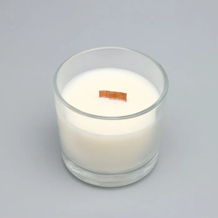 Свеча из соевого воска в стакане с деревянным фитилем "Ароматная корица", 65 гр