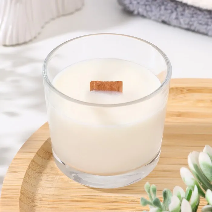 Свеча из соевого воска в стакане с деревянным фитилем "Ароматная корица", 65 гр