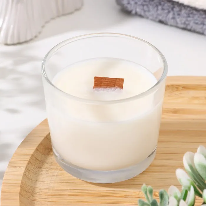 Свеча из соевого воска в стакане с деревянным фитилем "Ароматная корица", 65 гр