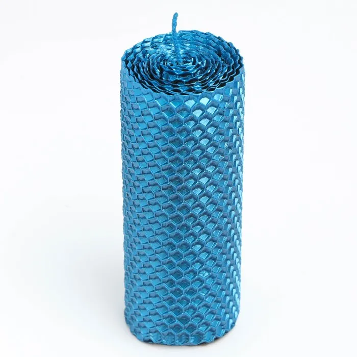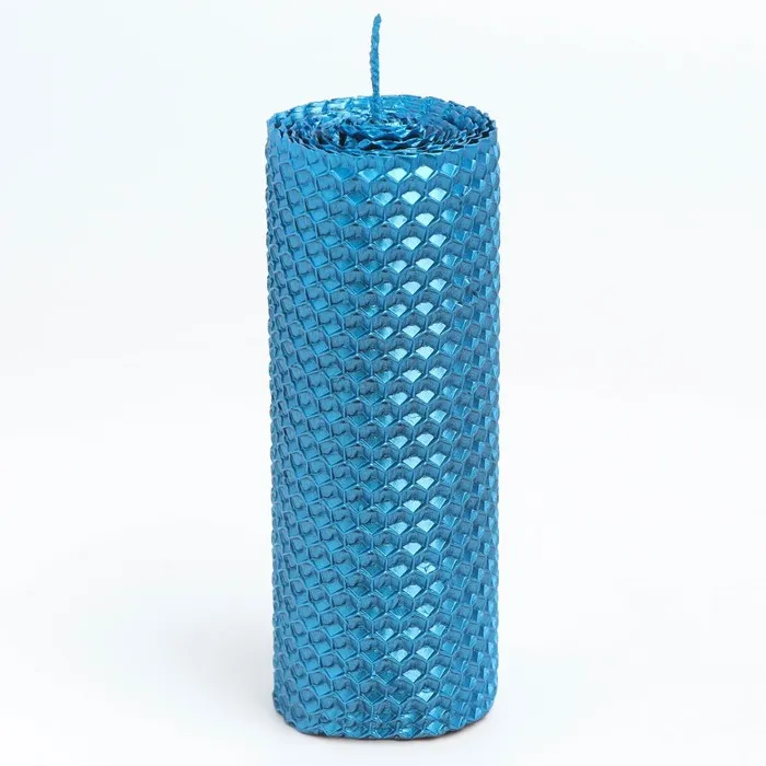 Свеча из вощины, 4.5×4.5×12.5 см, синий металлик